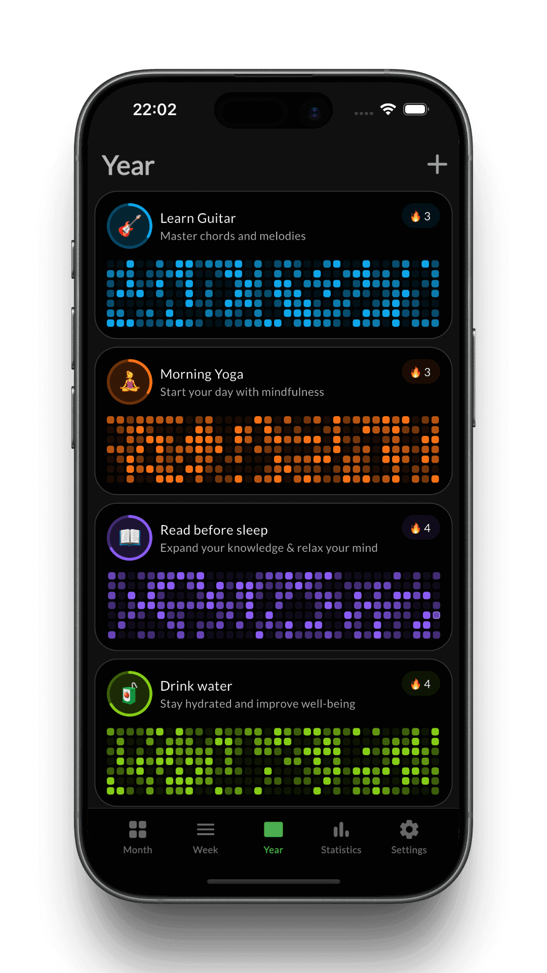 Keep tabs on your daily routines with easy-to-read visual grids. Aim to complete your habits consistently and embrace a better lifestyle.